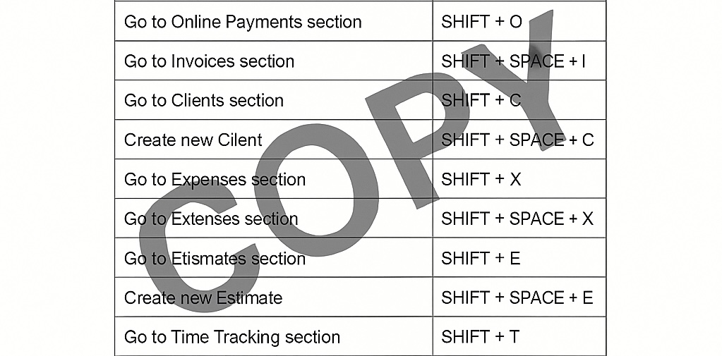 FreshBooks Keyboard Shortcuts